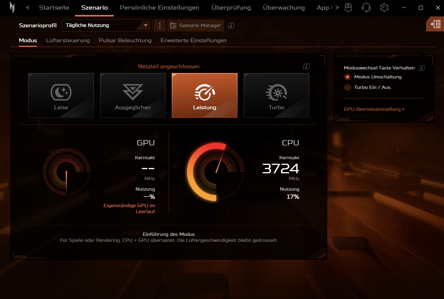 | Mode | Silent | Balanced | Performance | Turbo |