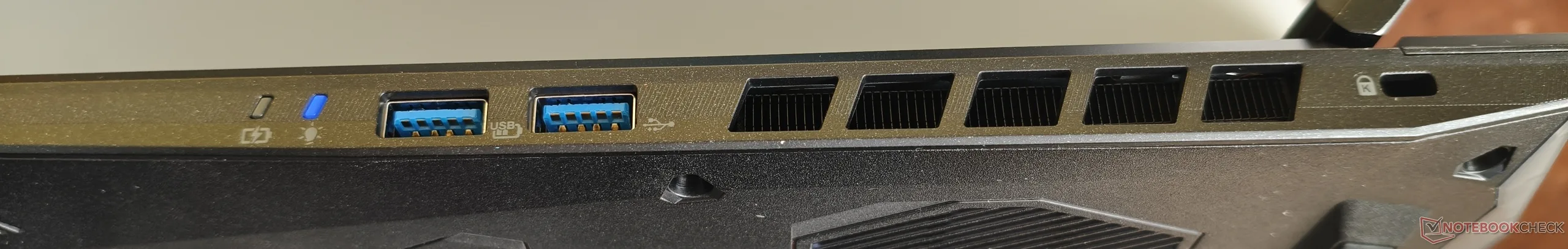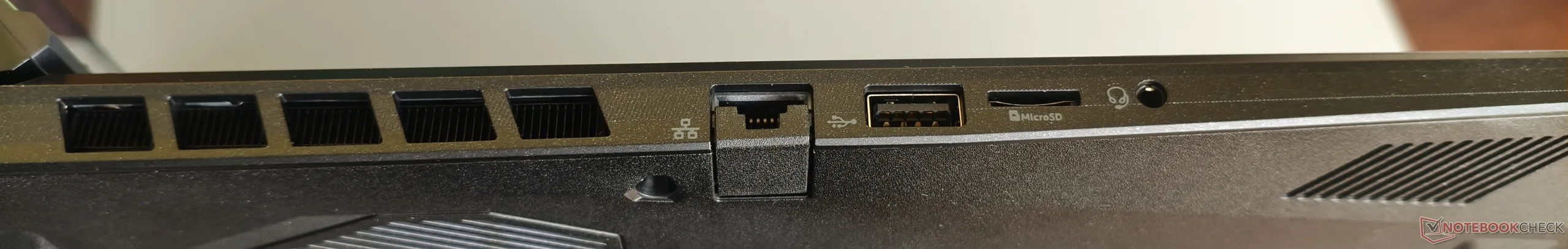 While buyers have to do without Thunderbolt, there is at least a USB 4 port on board. In general, the 18-inch laptop offers two Type-C and three Type-A ports, which is sufficient. There is also an audio socket, an HDMI output, a microSD reader, an RJ45 LAN port and an opening for Kensington locks.