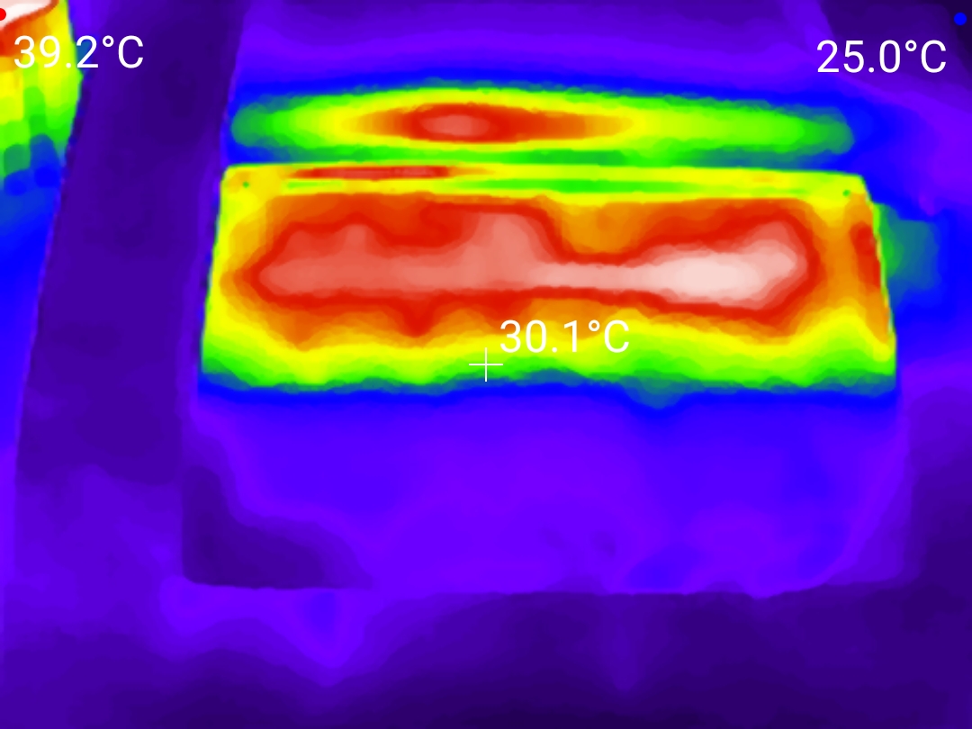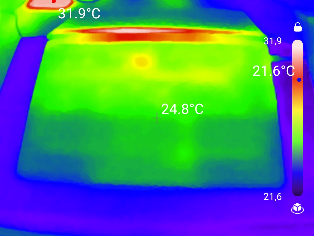 (+) The bottom heats up to a maximum of 37.9 °C / 100 F, compared to the average of 36.8 °C / 98 F