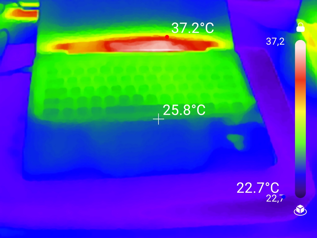 (+) The palmrests and touchpad are cooler than skin temperature with a maximum of 22.5 °C / 72.5 F and are therefore cool to the touch.