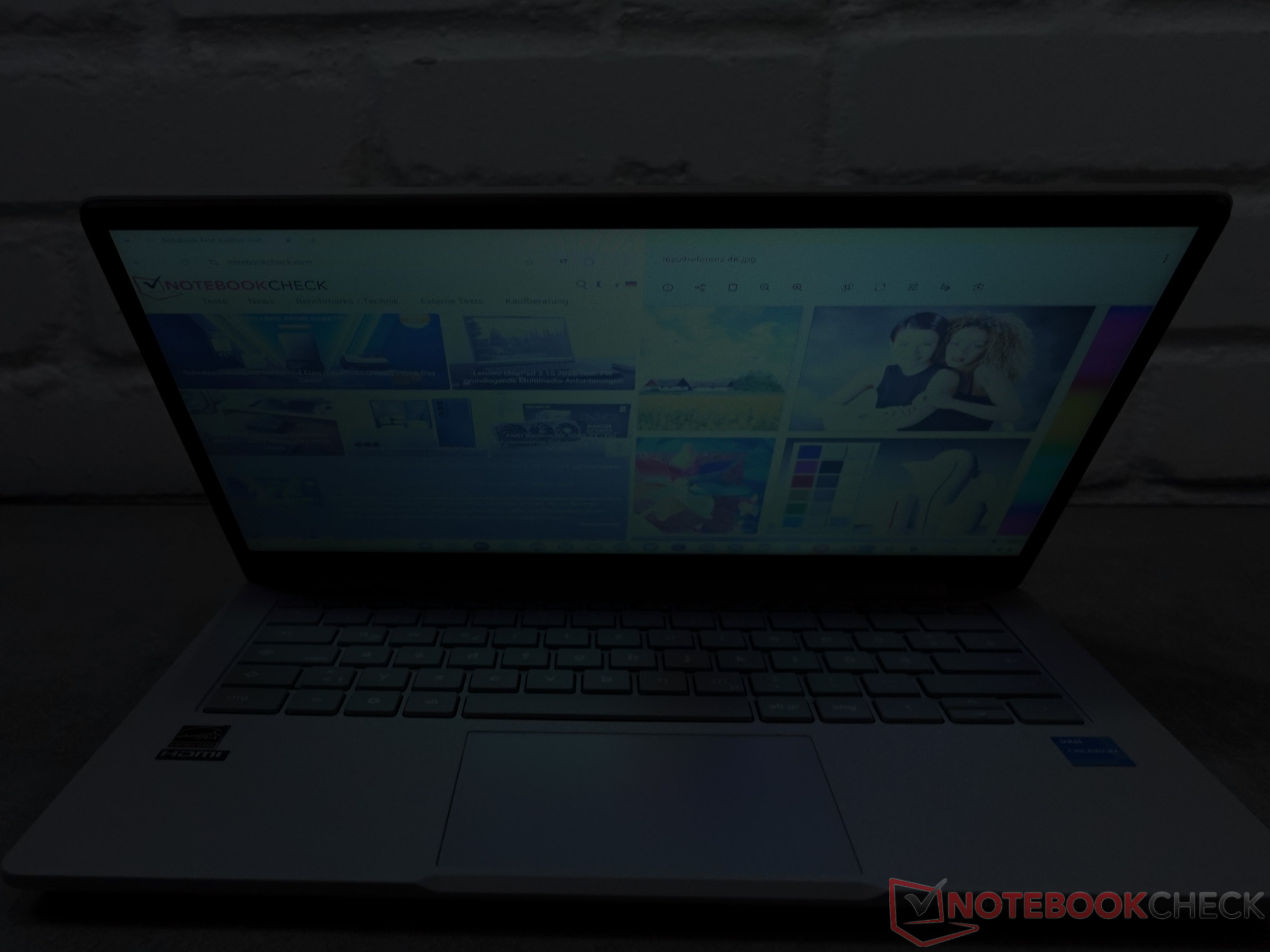 This is also evident in the color reproduction. With a color gamut of less than 60% of the sRGB color space, the image visibly lacks vibrancy. It's sufficient for everyday use, but it's not a pleasure for the eyes. The brightness of 250 cd/m² is adequate for indoor use. The matte surface helps against annoying reflections, but the screen is simply too dim for working outdoors. On the positive side, the response times are acceptable, and there is no PWM flickering for brightness control, which is easy on the eyes.