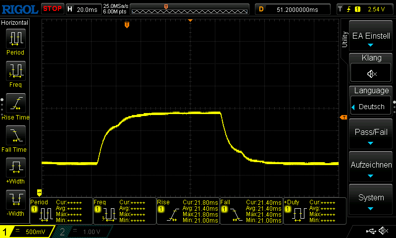 43.2 ms ... rise ↗ and fall ↘ combined | ↗ 21.8 ms rise | |