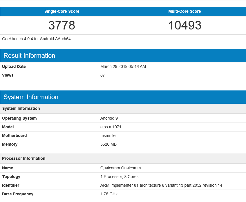 Other tidbits of information include 6 GB RAM and Android 9 Pie OS, things we already expected from the Meizu 16s. In terms of the scores registered by this particular device on Geekbench, they are quite impressive for an Android device. The single-core score of 3,778 puts the alleged Meizu 16s near the top and in the company of the Samsung Galaxy S10 range of smartphones.