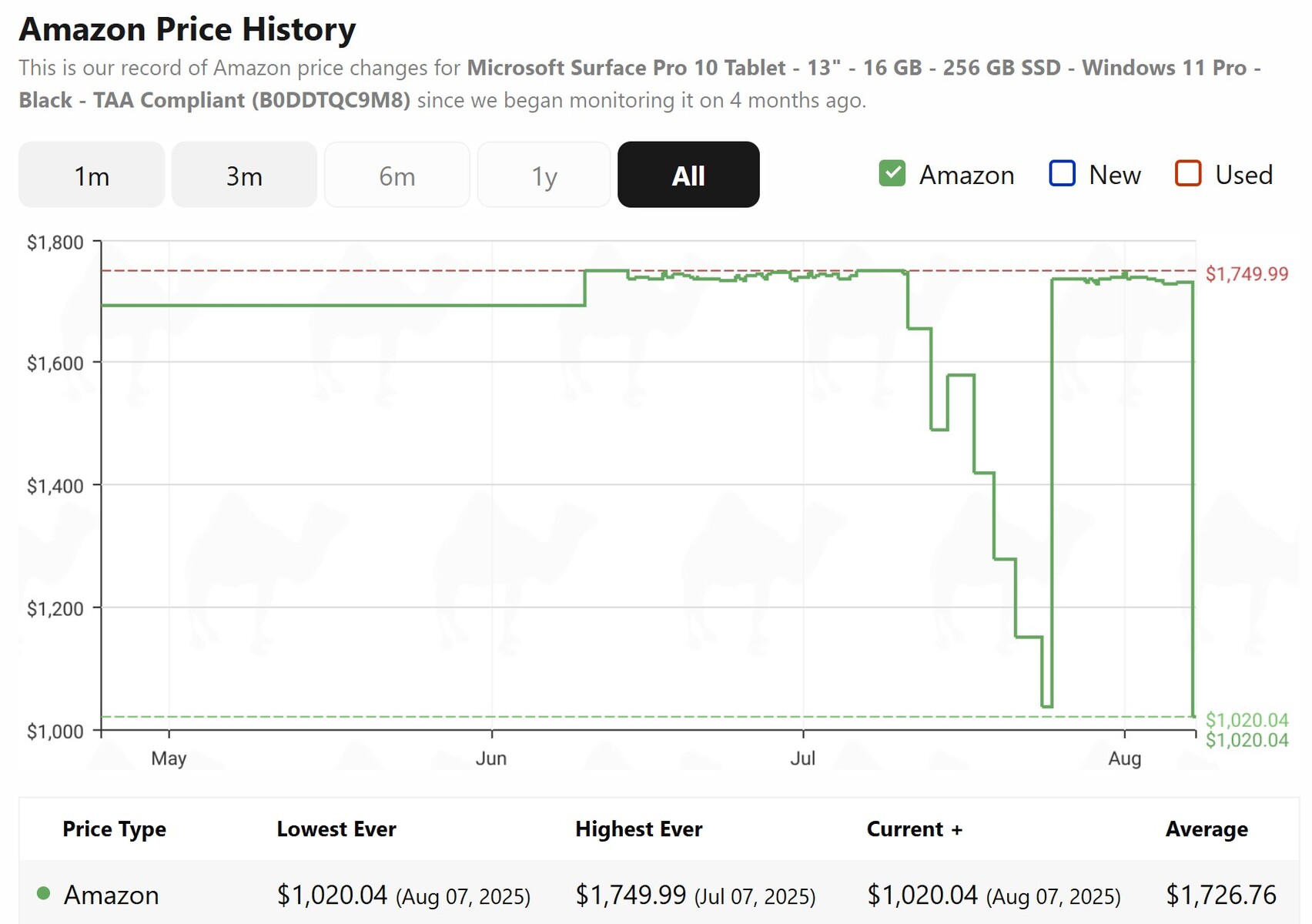 Amazon has dropped the price of the Microsoft Surface Pro 10 with an Ultra 7 CPU, 16 GB of RAM, and 256 GB of storage (model XHM-00002) to its lowest ever of $1,020.40.