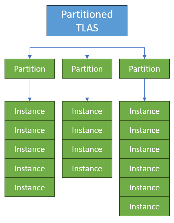 Partitioned TLAS takes the same methodology used with the clustered geometry and applies it to the game scenery. In this case, the entire game scene can be partitioned into smaller groups, which the GPU can manipulate easier with new ray tracing elements. This considerably speeds up ray tracing performance, since the GPU can ray trace only the visible or necessary elements from the entire scene.