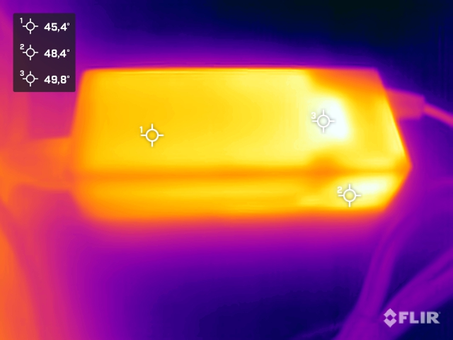 (±) The bottom heats up to a maximum of 41.8 °C / 107 F, compared to the average of 36.6 °C / 98 F