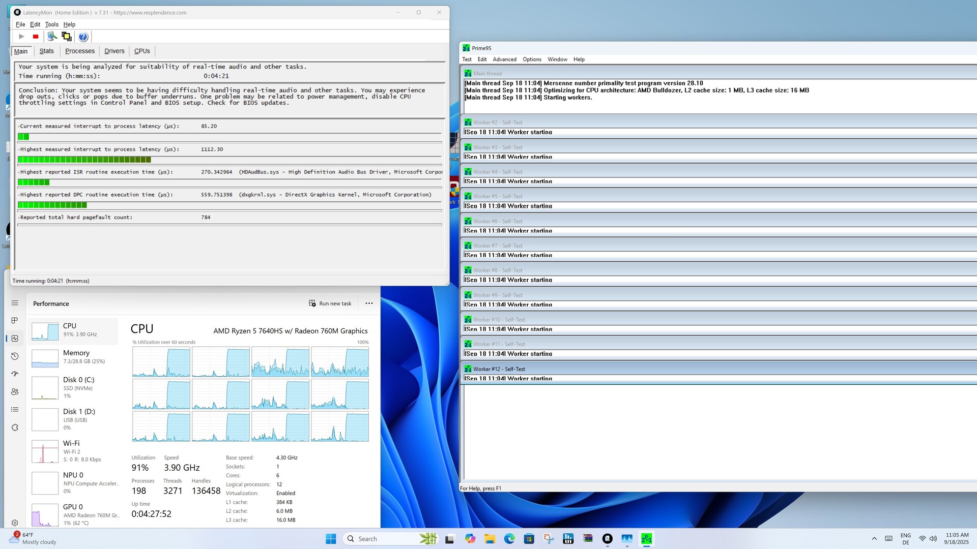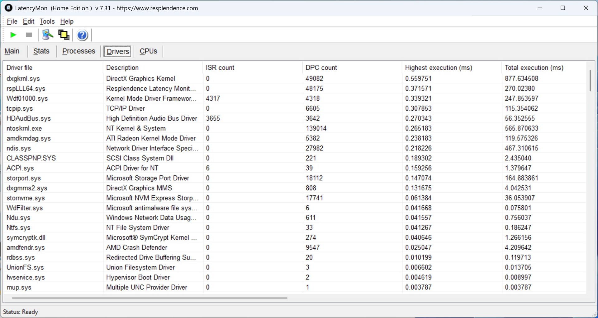 | DPC Latencies / LatencyMon - interrupt to process latency (max), Web, Youtube, Prime95 | |