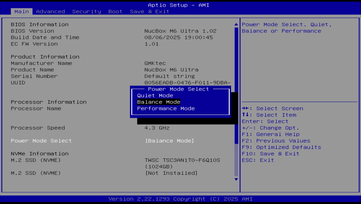 The test runs were carried out in the factory-set balanced mode (45 watts). A performance mode (50 watts) and a silent mode (35 watts) are also available in the BIOS.