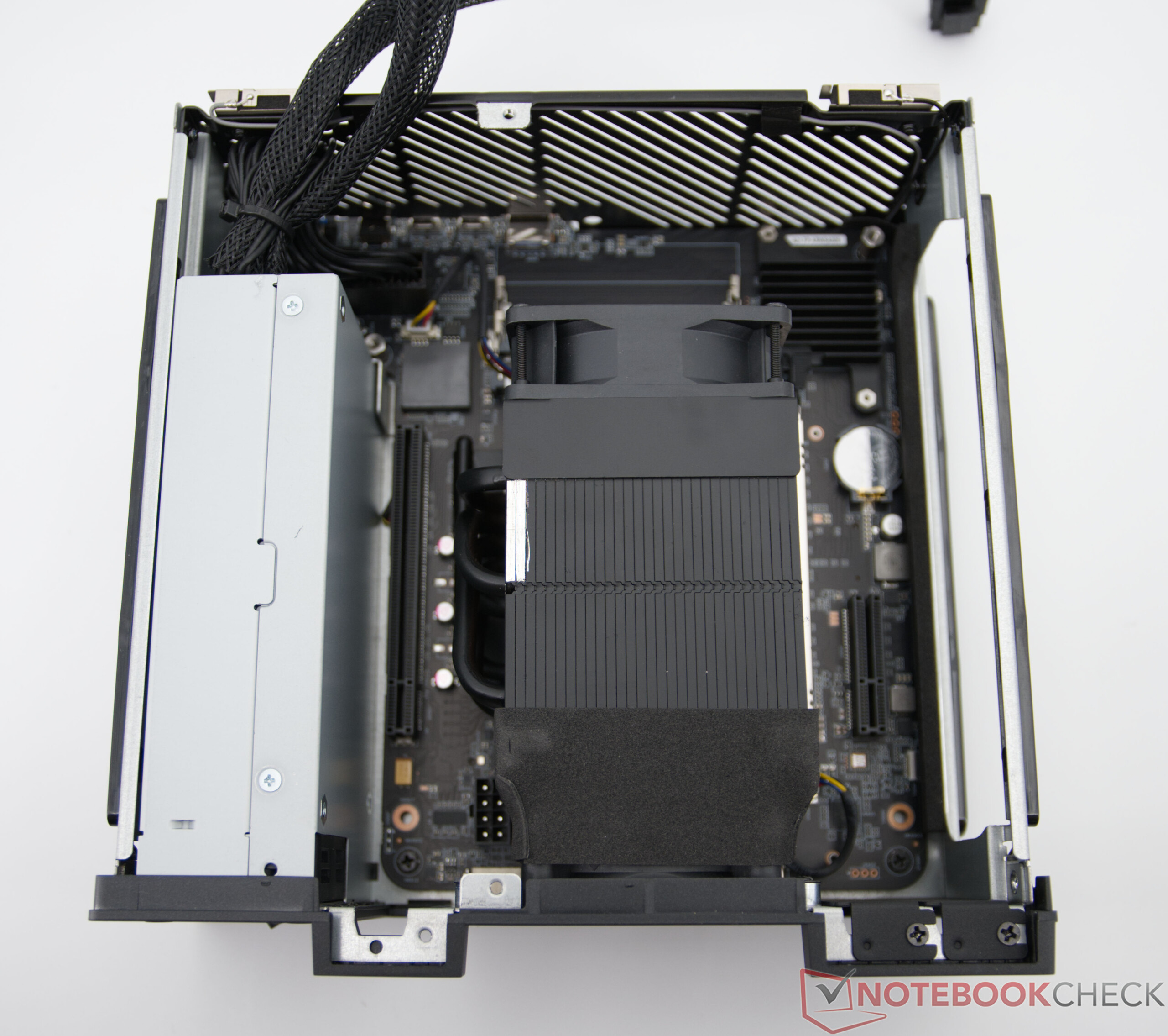 All relevant tests were carried out in the delivery state. The CPU achieves a short-term power consumption of up to 140 watts, while it is limited to 100 watts under sustained load. If a PCIe plug-in card is also installed, the power consumption is reduced to 110 watts (PL2) or 90 watts (PL1).