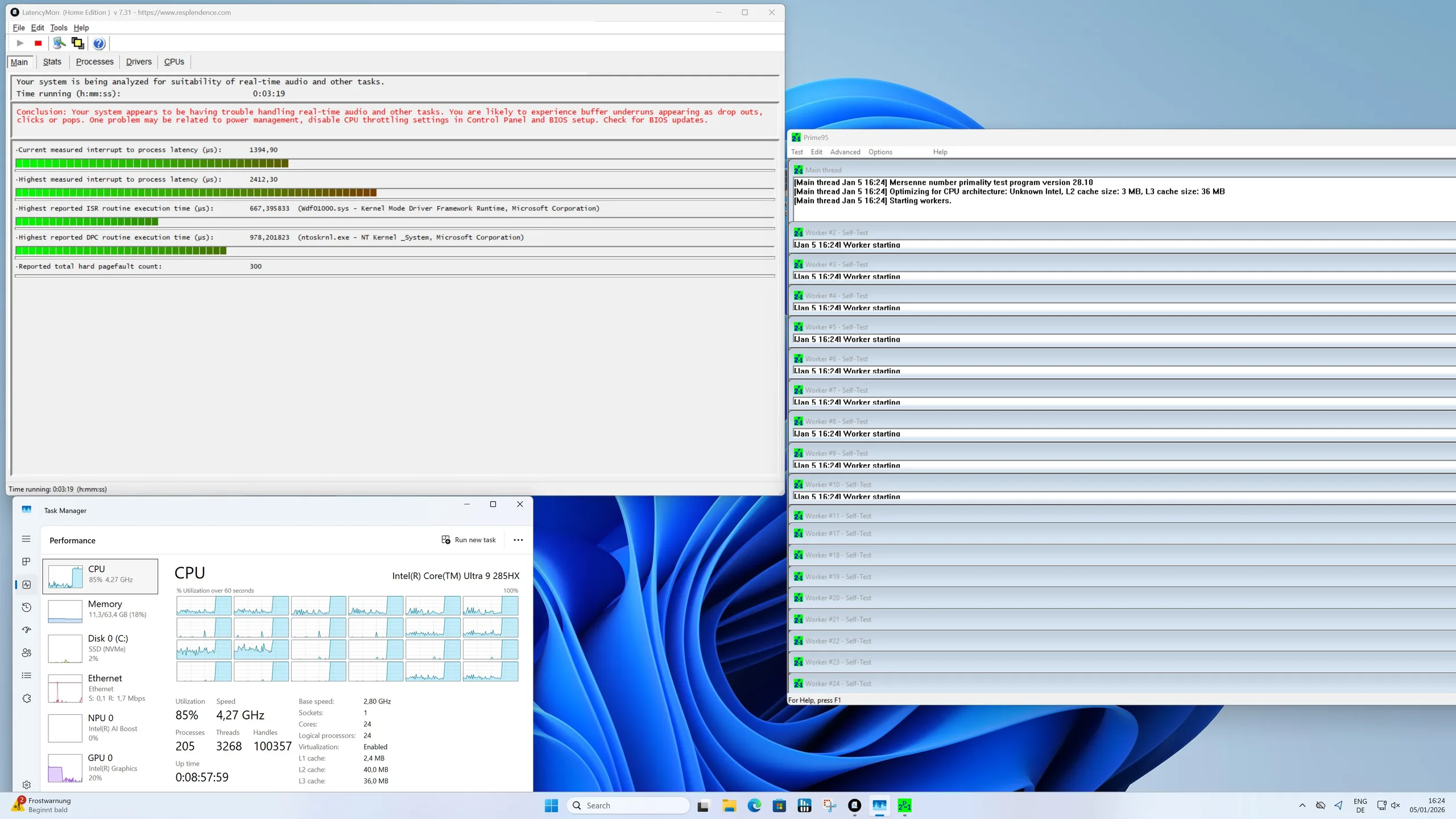 | DPC Latencies / LatencyMon - interrupt to process latency (max), Web, Youtube, Prime95 | |