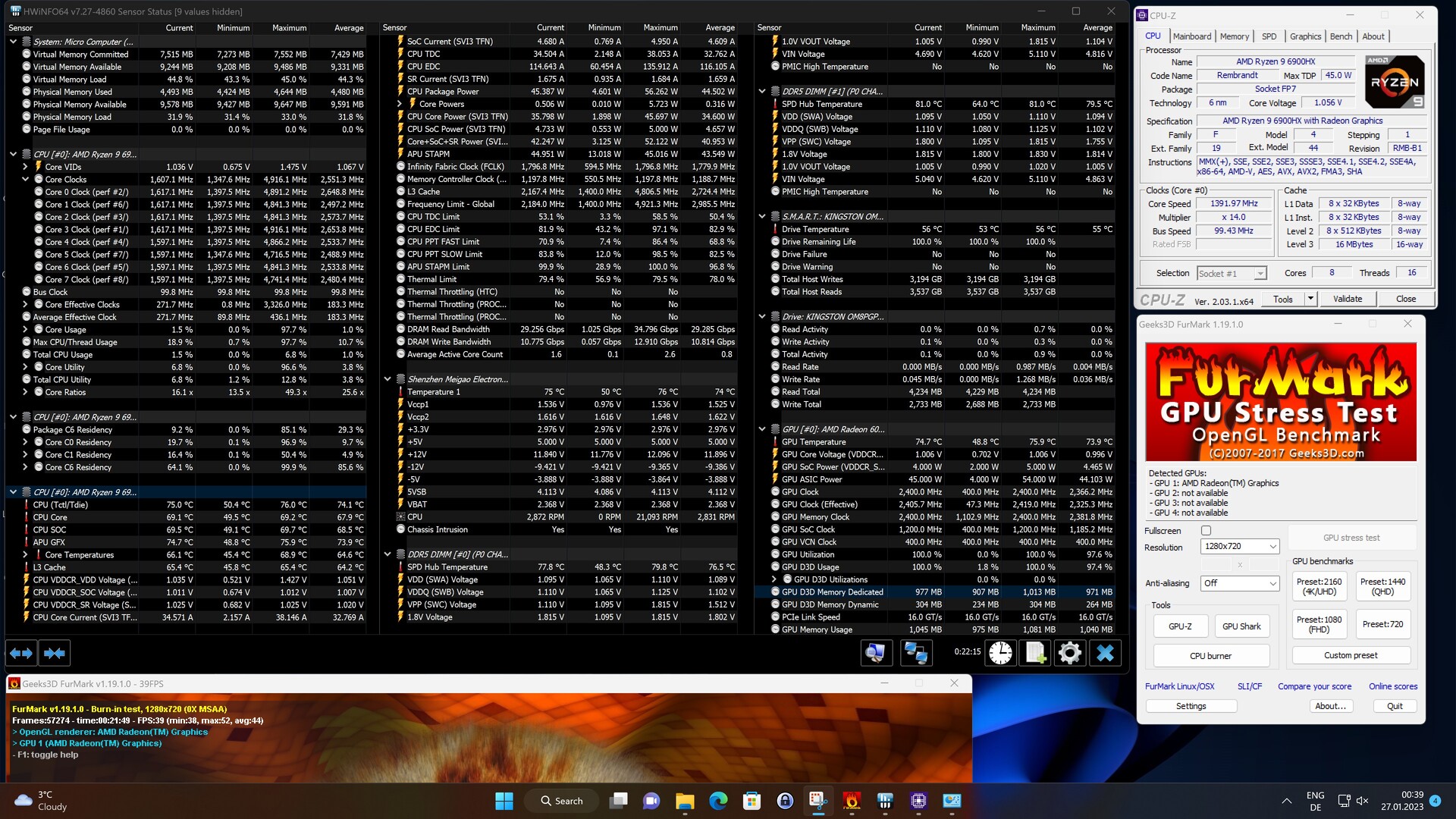Minisforum Venus Series UM690 running Cinebench R15 Multi loop