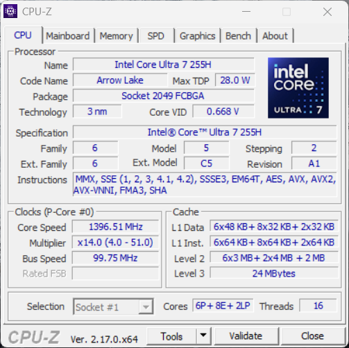 The test device contains the Intel Core Ultra 7 255H (Arrow Lake), which can consume up to 115 watts for short periods and 70 watts continuously. The CPU performance is good overall, even if some of the competitors are even slightly faster. In battery mode, the processor can consume a maximum of 40 watts, which is why the multi-core performance is around 14% lower here.