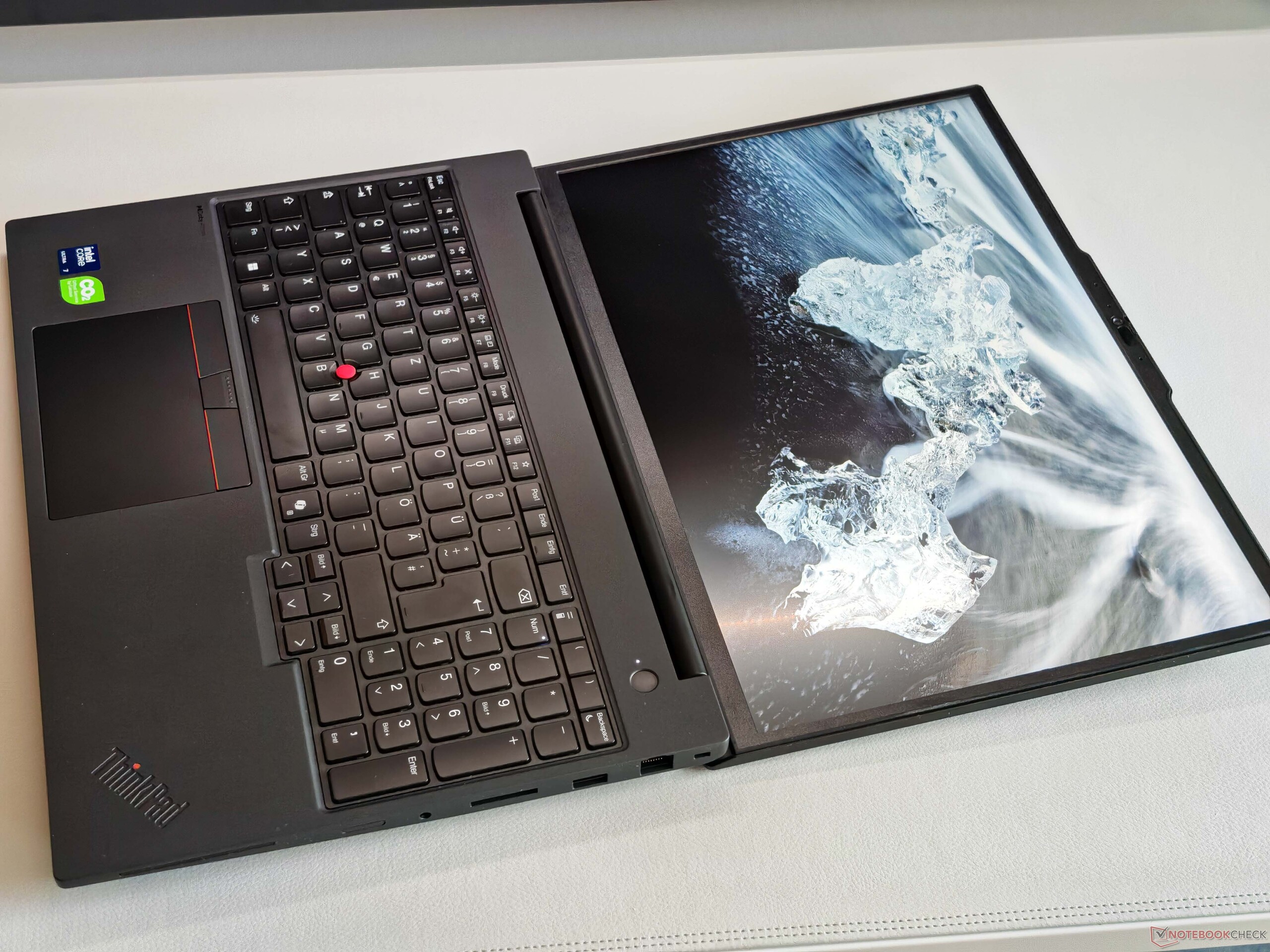 There's not much to complain about in terms of connections, but one of the two Thunderbolt 4 ports is always occupied by the power supply unit. The Wi-Fi 7 module achieves good and stable transfer rates, and there is also an Ethernet port available. There is also space for a WWAN module, but the antennas are not pre-routed (not WWAN-ready). The card reader achieves average transfer rates and the 5 MP webcam (with shutter + IR) takes usable pictures.