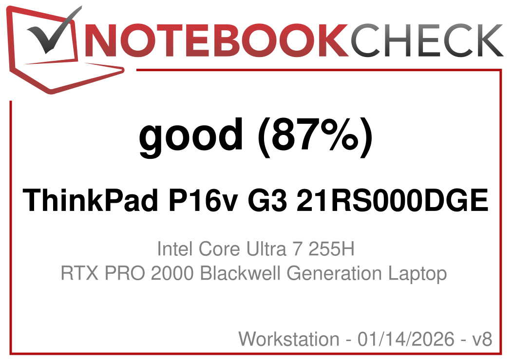The ThinkPad P16v Gen3 is Lenovo's current entry-level model when it comes to full-blown mobile workstations. We test the 21RS000DGE model with the Core Ultra 7 255H, 32 GB RAM, the Nvidia RTX PRO 2000, a 1 TB SSD and the Full HD screen with a brightness of 500 cd/m² for 2,825 Euros (~$3277).