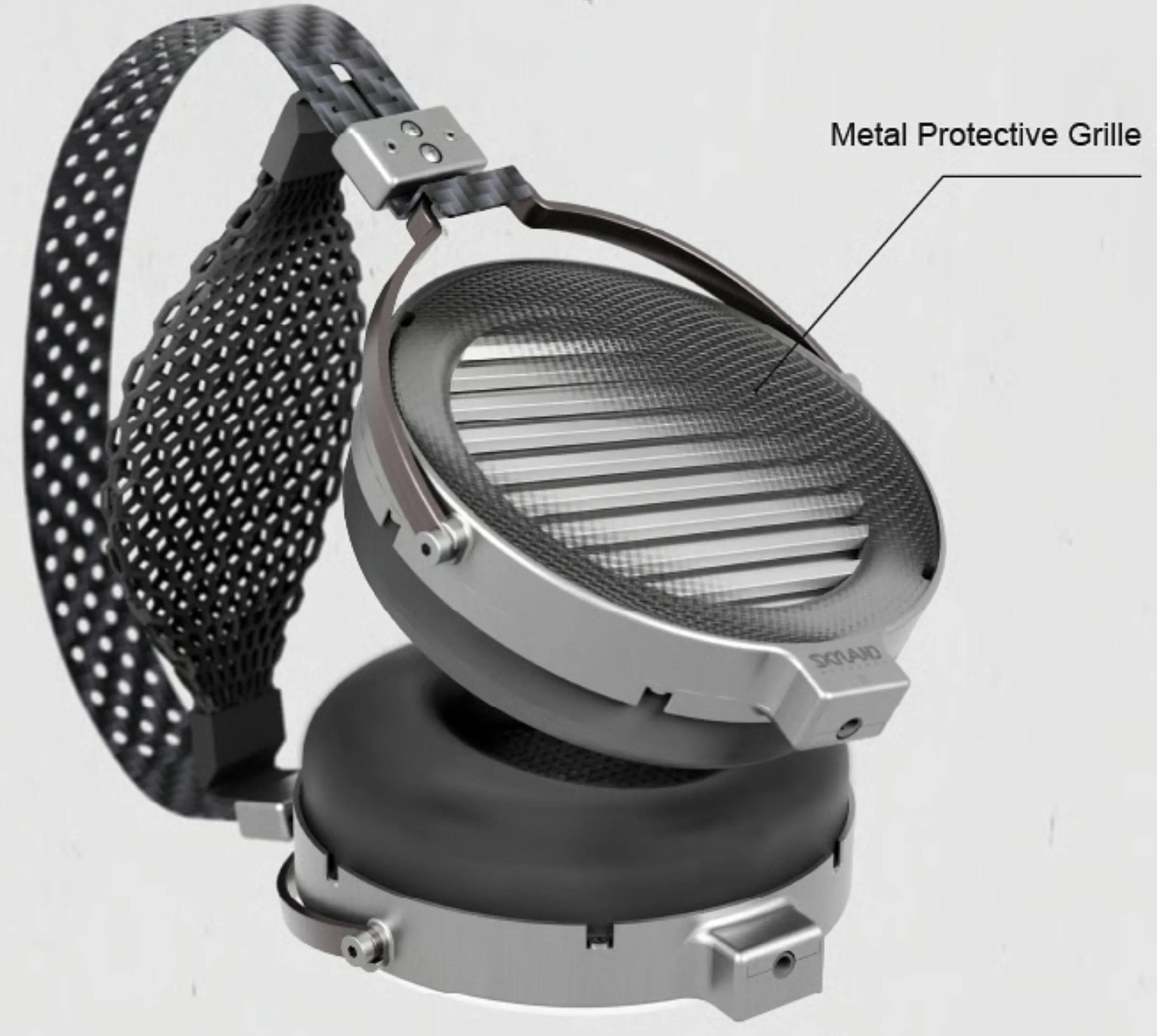 The drivers are fitted inside CNC-machined aluminum earcups, which come with soft lambskin earpads and are attached to a strong, flexible carbon fiber headband, with a floating soft, 3D-printed headband pad underneath.