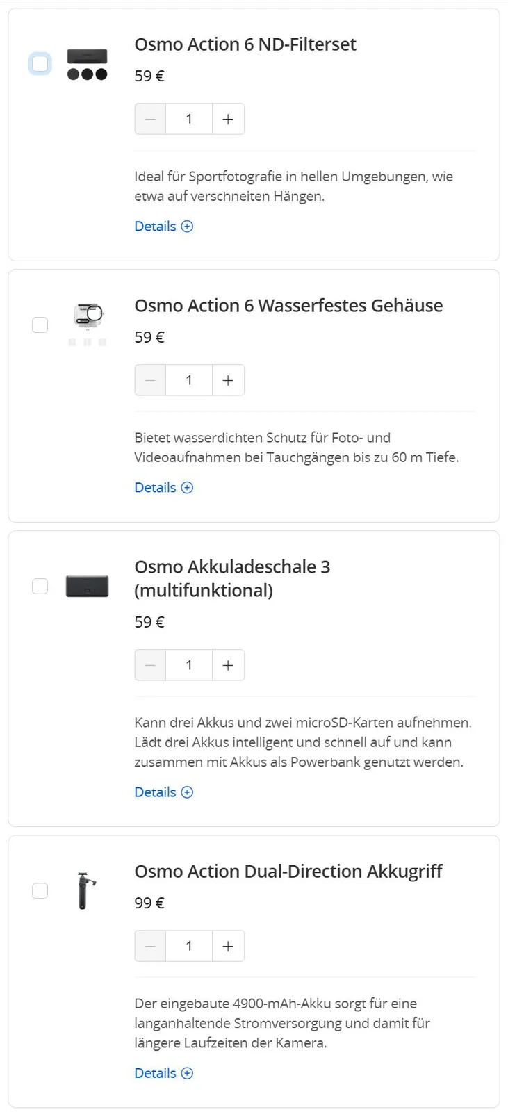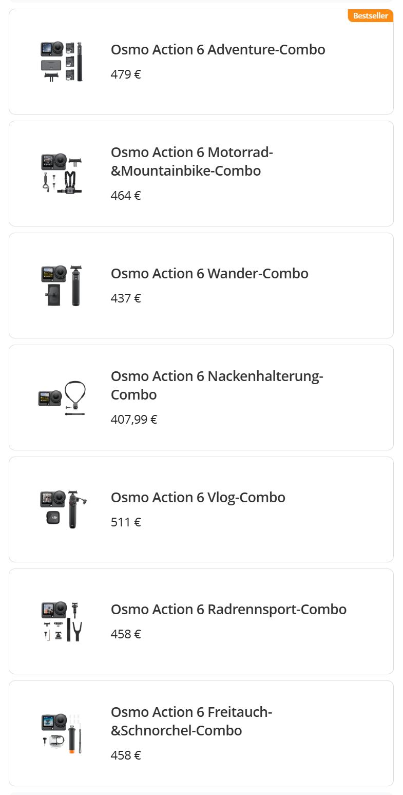 Directly from the manufacturer, the DJI Osmo Action 6 costs €379 in the Standard Combo. Our Adventure Combo unit costs €479.