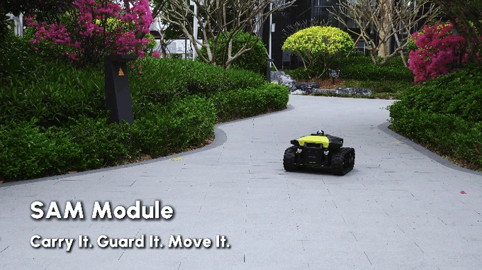 As announced by the manufacturer, the Yarbo M Series now features a Smart Assist Module (SAM). This module enhances the Yarbo M Series Core's capabilities. Previously, when equipped with either the mower or snow plough module, the M Series could already be used in "Patrol" and "Follow-Me" modes, as well as for towing small loads of up to 100 kg autonomously.