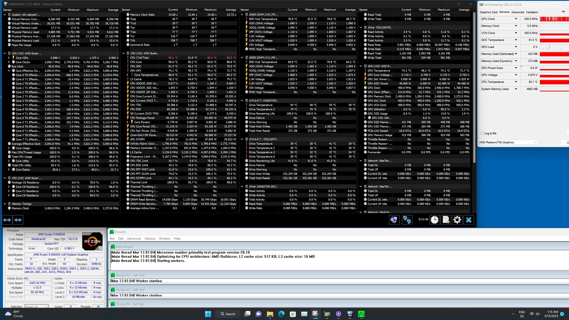 The Morefine M600's case only heats up slightly, which means that heat is effectively led out of it. In the AMD Ryzen 9 6900HX's stress test (which simulates an extreme scenario), we noted a maximum temperature of 90.9 °C.