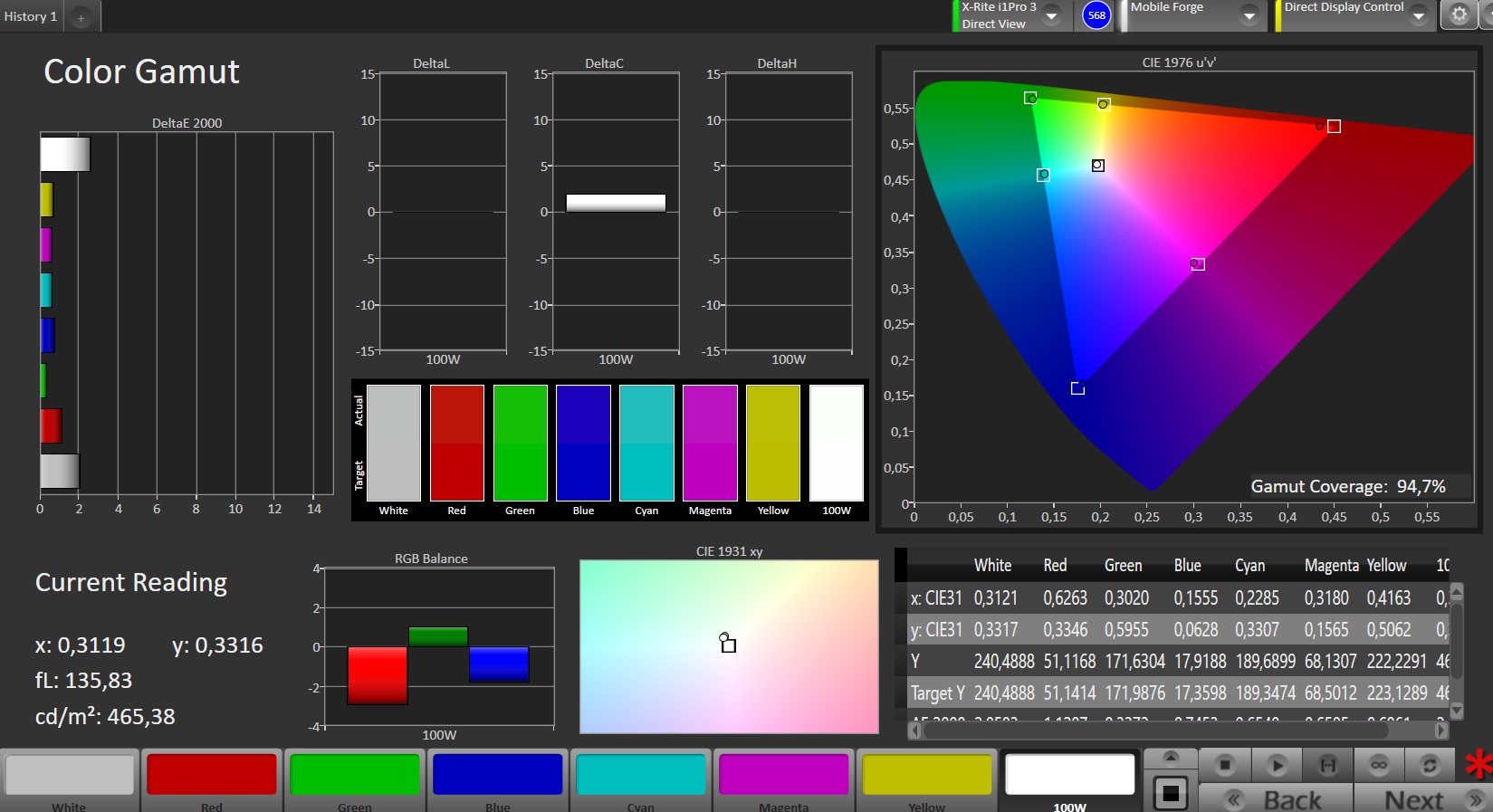 | Colorchecker dE 2000 max. * | 2.58 | 2.3 11% | 6 -133% | 3.5 -36% | 8.39 -225% |