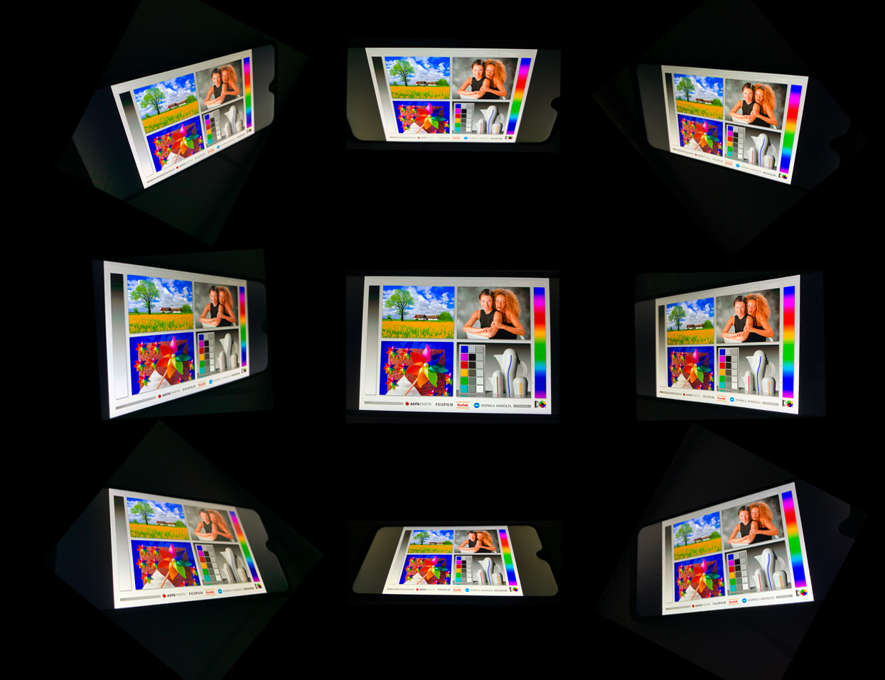 The viewing-angle stability of the display is very good, and there are only minimal brightness shifts.