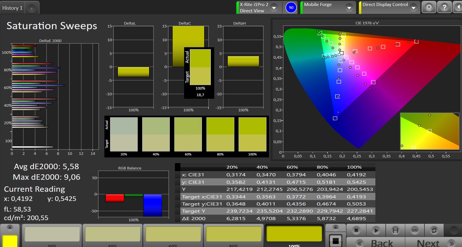 | Colorchecker dE 2000 max. * | 7.95  | 5.9  26%  | 6.8  14%  | 15  -89%  | 4.5  43%  |