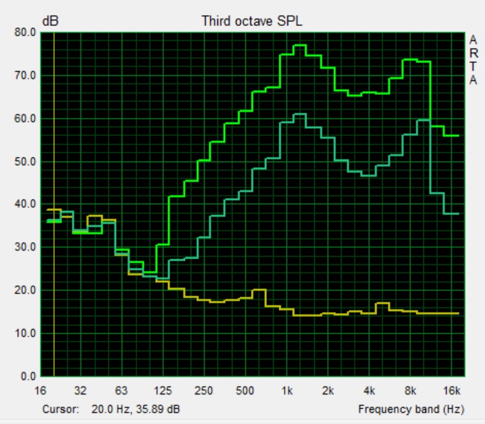 (±) | linearity of bass is average (12.4% delta to prev. frequency)