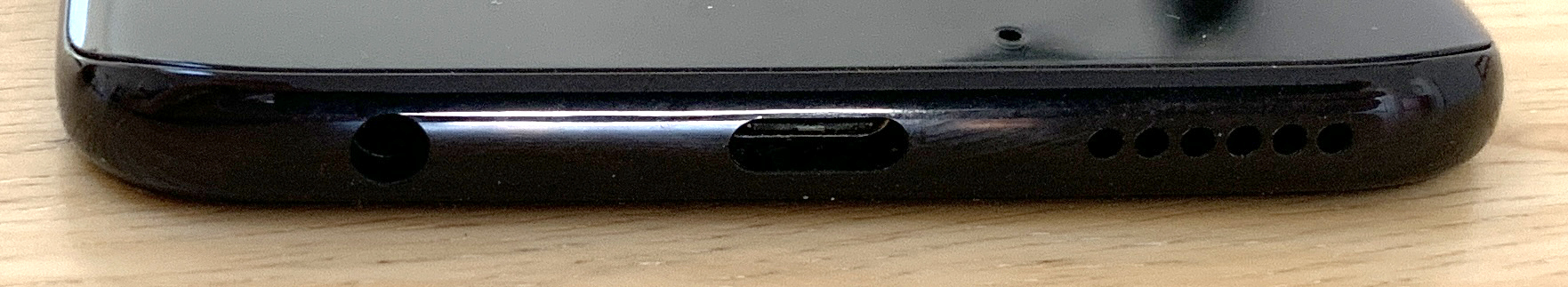 While the small mono speaker at the bottom edge of the Motorola Moto G7 is able to play quite loudly, the sound is distorted considerably at maximum volume. However, if you turn down the speaker volume a little bit, you get a fairly decent sound for a mid-range smartphone, where the highs are not overemphasized too much and the low mids are still audible.