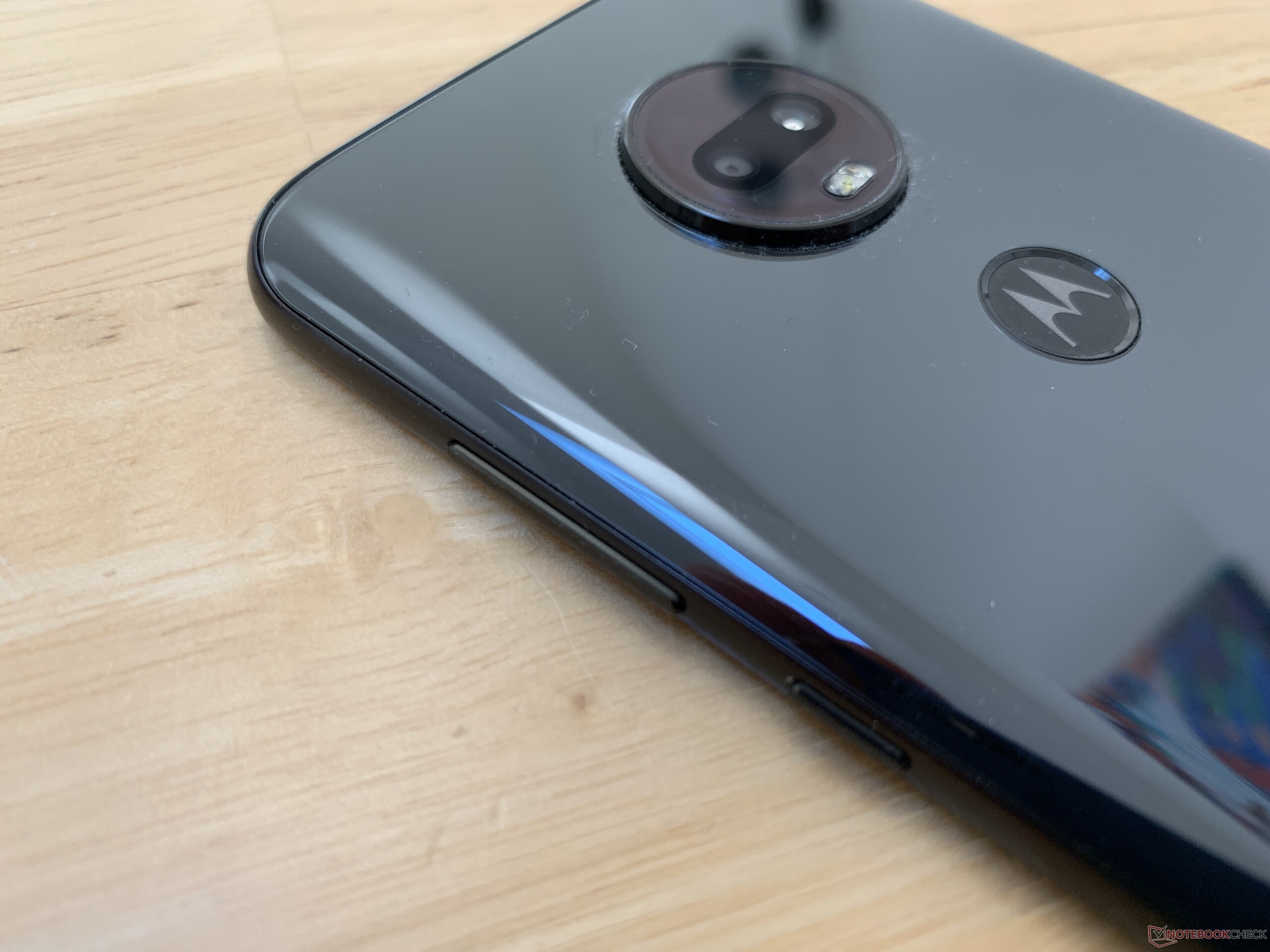 Motorola has adapted the case of the Moto G7 to the current trends. In order to make room for a larger display in front, the fingerprint sensor has moved to the back. At the same time, the top edge has shrunk to a small water-drop notch that is surrounded by more of the display as well. Compared to the Moto G6, the smartphone has become more modern, but the design of the back has not changed. There is still glass that extends slightly over the edges and a round camera module that is typical for Motorola's design language.