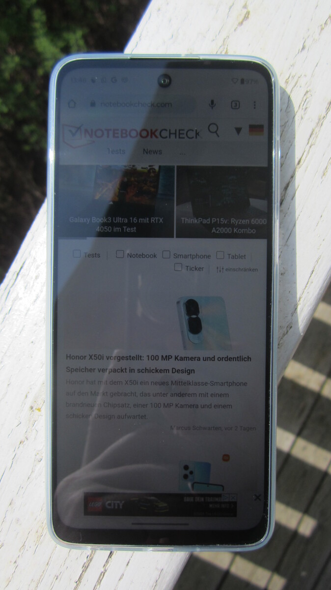 Whilst the Moto G72 has an average peak brightness of 980 cd/m² and thus is above average in this department for a mid-tier device, max brightness has nearly been halved on the Moto G73 5G. On a pure white background, the screen only managed to hit an average of about 498 cd/m² across the entire display, putting the G73 5G at the very bottom of our comparison. Restricting the analysis to a smaller section of the screen (APL18) didn't make the result much better either and resulted in a max brightness of 542 cd/m².