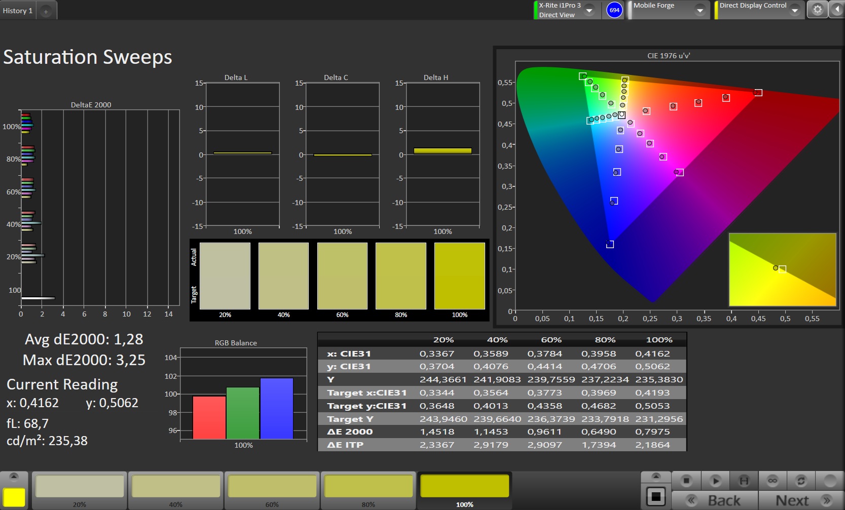 Colour accuracy remains excellent, with barely perceptible deviations from reference values.