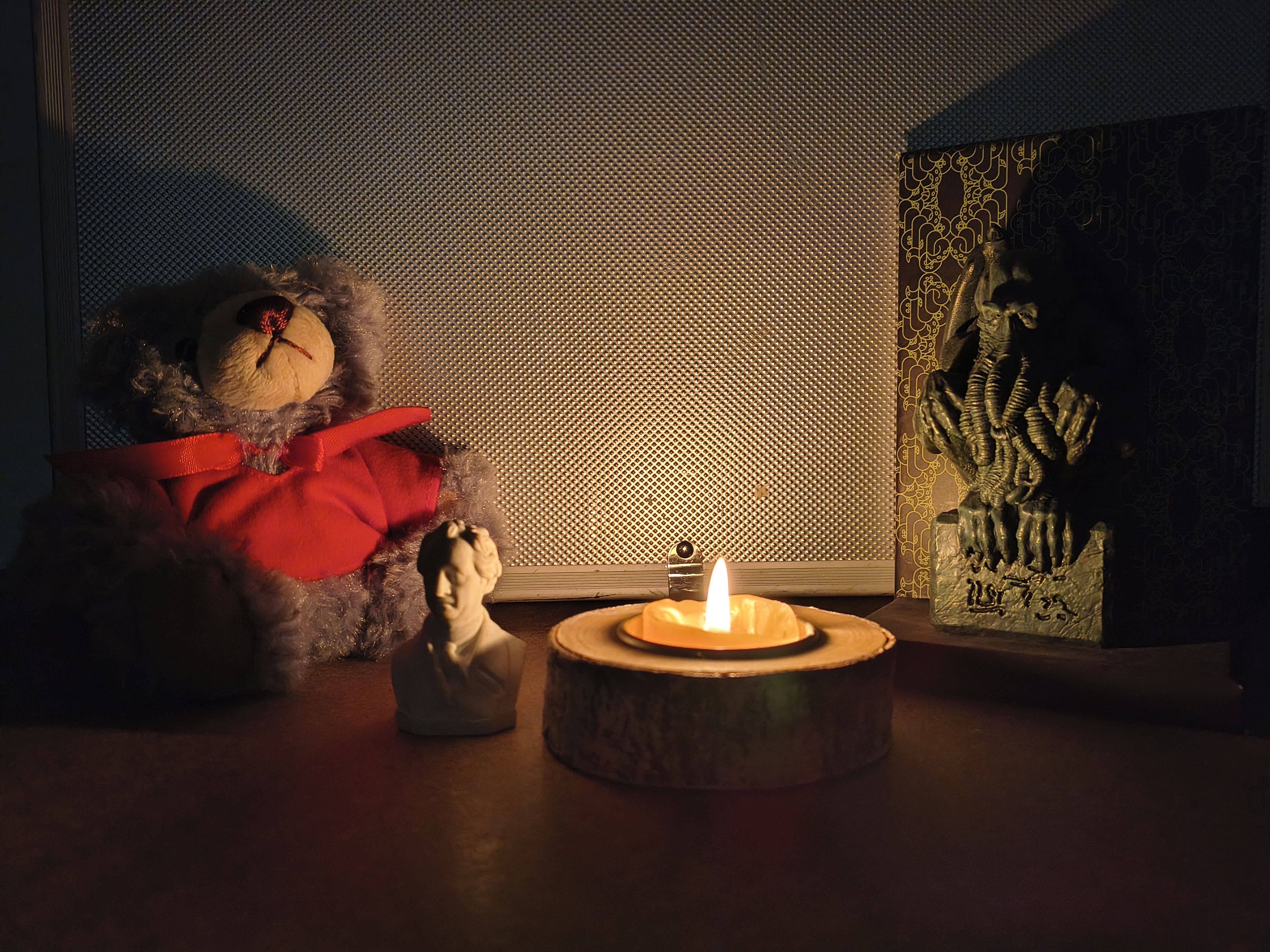 In low light, many details remain visible, although definition in darker areas is rather limited.