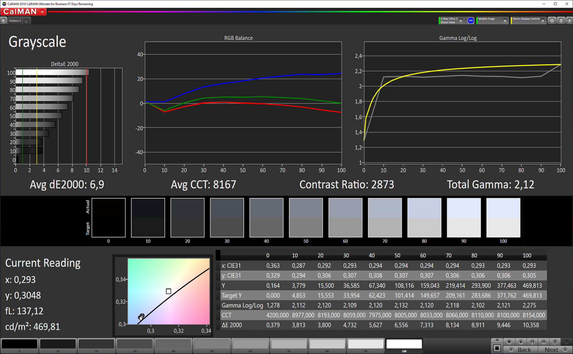 ΔE Greyscale Calman: 6.9 | ∀{0.09-98 Ø5}