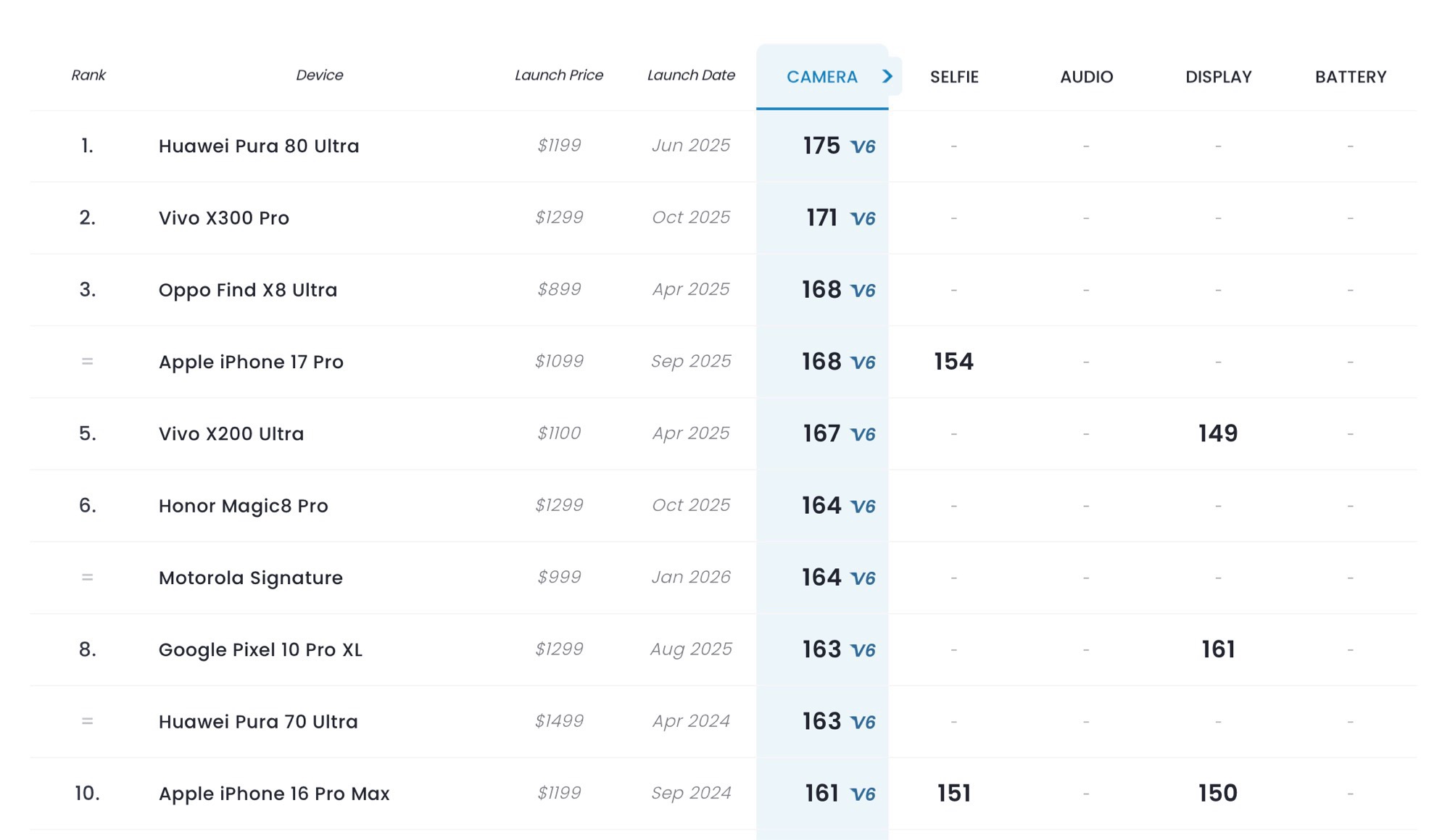 Achieving a fairly respectable score of 164, the Motorola Signature places sixth in DxOMark’s overall rankings – one spot ahead of the Google Pixel 10 Pro XL and just below the Apple iPhone 17 Pro. The device showed only minor weaknesses during DxOMark’s analysis, such as inconsistent exposure in video capture, image noise in scenes with strong lighting in the background, and some detail loss at 2x zoom due to its reliance on digital magnification.