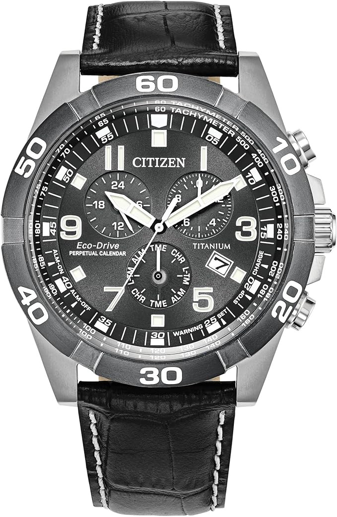 Those wanting more technical complexity might be more drawn to the Classic Chronograph with Perpetual Calendar, currently at $275.99 after a steep cut from $575. This model gets a tachymeter bezel, 1/20-second chronograph timing, dual time, and full calendar adjustments tied to Citizen’s internal system. It’s bulkier than the dress models, sure, but the discount puts it in the range of mid-tier quartz chronographs from other brands that usually lack the automatic calendar support.