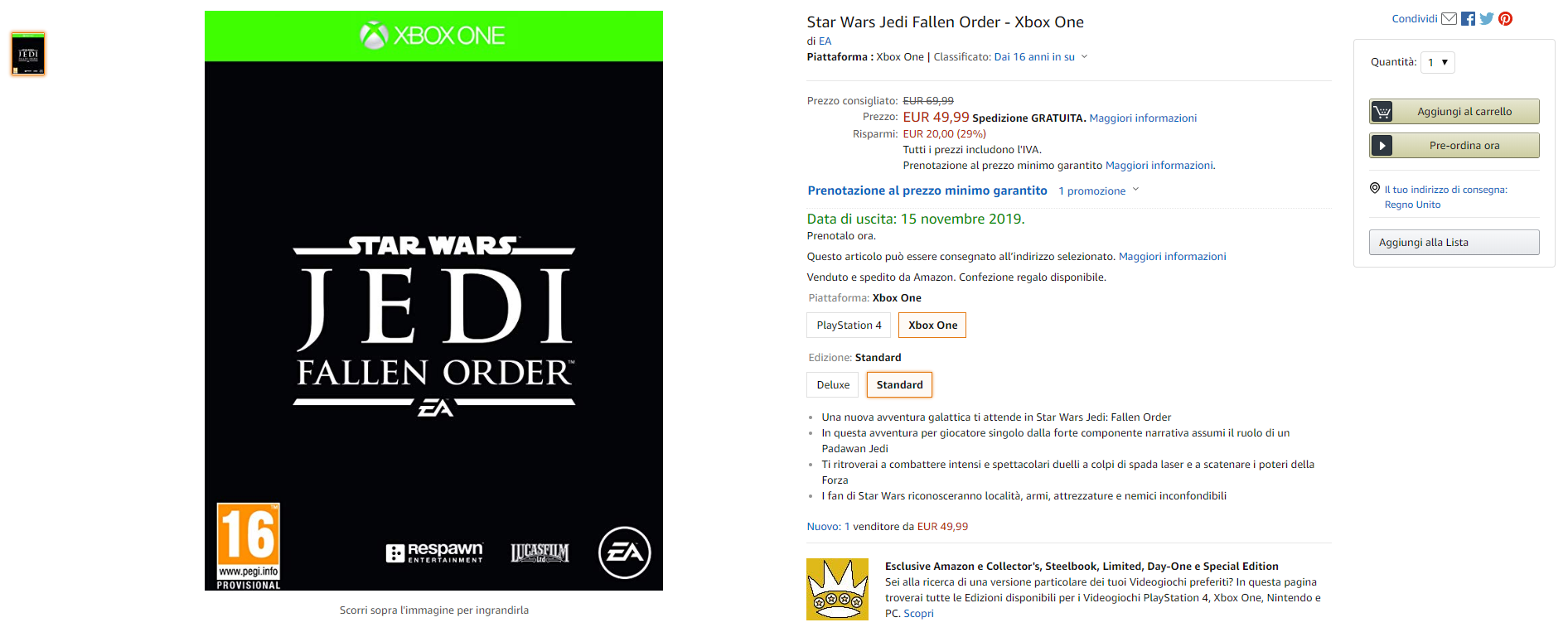 All leaks point towards the game coming to consoles and PC on November 15. Firstly, one crafted person on Twitter has got their hands on an official pin early, which has the words "Available 11.15.19" on the back. Moreover, an Amazon Italy listing gives the same date for both the PlayStation 4 and Xbox One versions. It also looks like the game will come in Standard and Deluxe Versions, which will cost €49.99 (~ US$56.52) and €79.99 (~ US$90.44) respectively. We suspect that regional prices will vary.