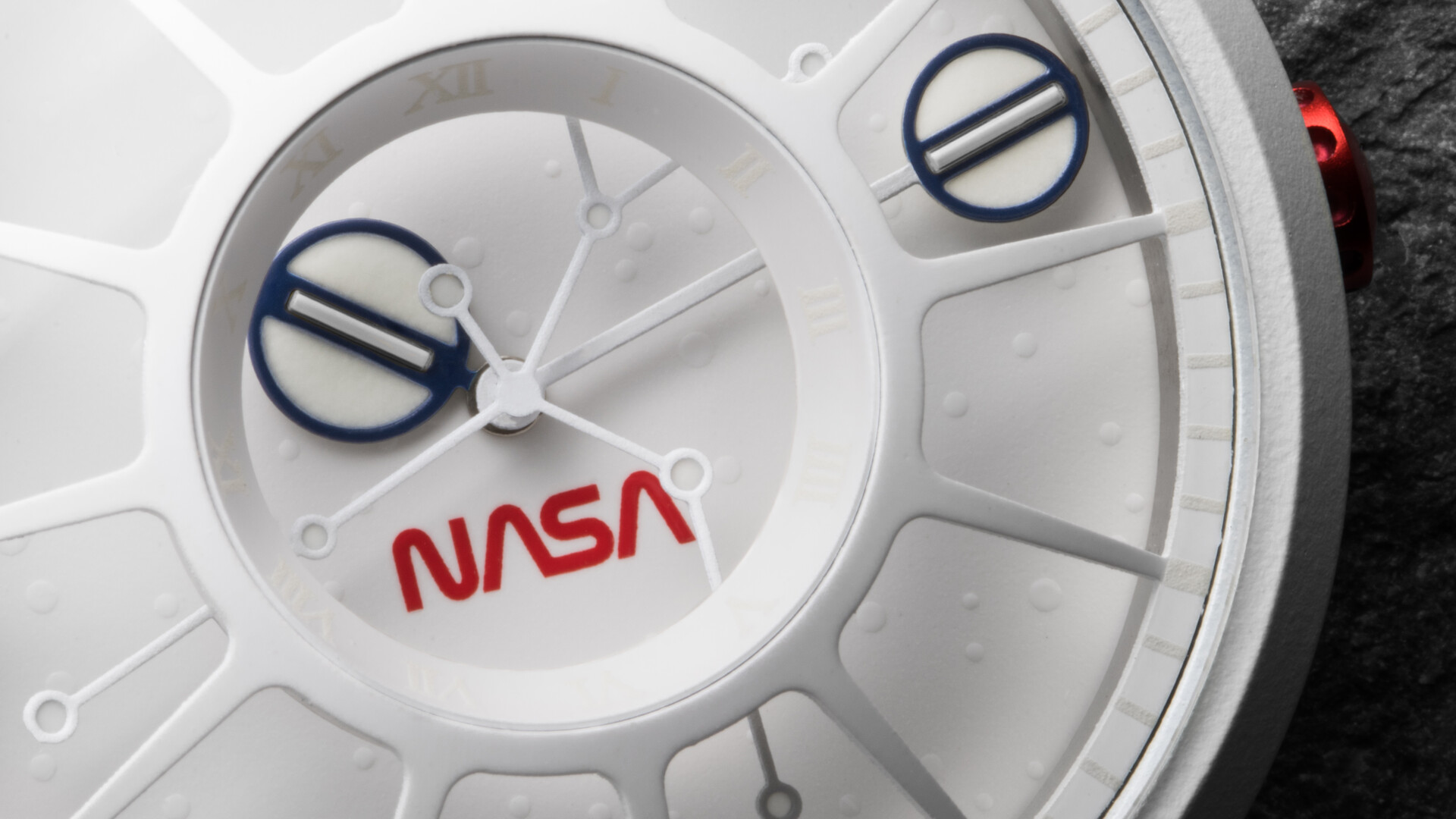 According to Xeric, the Trappist-1 was completely redesigned for the NASA Edition. The changes were based on the feedback from those who backed the Trappist-1 Moonphase and include the following: two times brighter luminous hands and silkscreened dials, a cupola-style space window grille, orbiting planetary system, shatter-resistant Hesalite glass, ribbed space glove straps, and more.