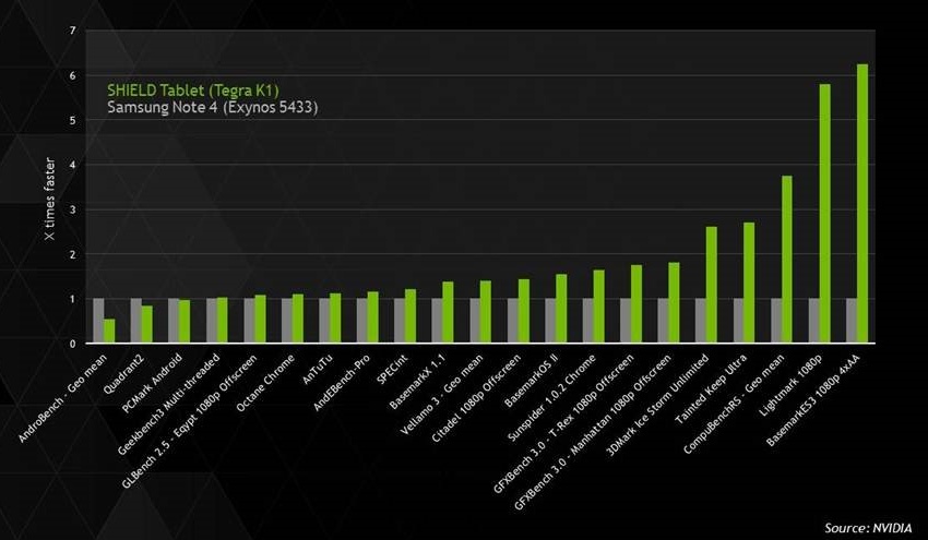 Part of Samsung's recent filing focuses on the fact that NVIDIA's claim that the Shield tablet, which is powered by the Tegra K1 SoC, has "the world's fastest mobile processor" is, in fact, "false and misleading." According to Samsung, their Exynos 5433 chip is faster.