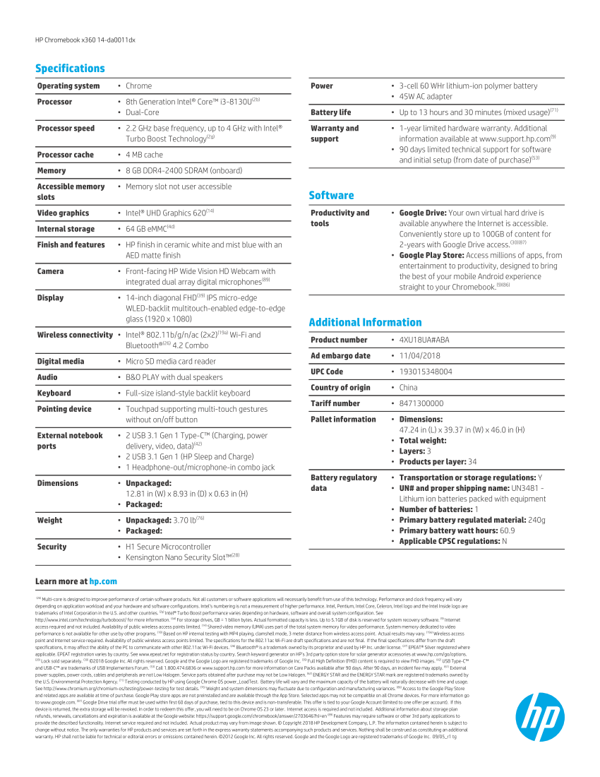 • The HP Chromebook x360 14 is available for pre-order beginning today at HP.com for a starting price of $599. 6