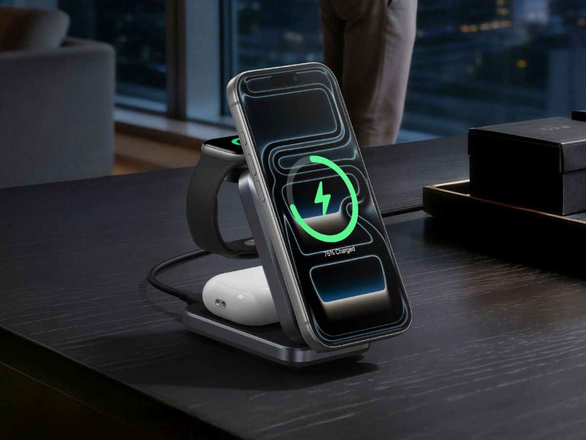 Anker’s new Prime Wireless Charging Station is designed to charge a phone, an Apple Watch and wireless headphones simultaneously. For an iPhone or Google Pixel, there is a Qi 2.2 wireless charging pad, delivering up to 25W power. This sits on the upper half of the accessory, which can be tilted up to 60°, allowing users to access two more wireless charging pads underneath. On the base is the larger charger, designed for an earbuds case, with an up to 5W output. Behind the upper section of the charger is a pop-out Apple Watch charger, again delivering 5W wirelessly.