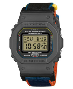 The straps are what make this upcoming series so unique. Instead of the usual resin band, the DW-5600MNC models feature a cloth-style cross band. The fabric looks to be layered, with visible texture and contrasting inner linings. In one light grey variant (DW-5600MNC-7A8), the strap shows a bright yellow inner accent peeking through the top and bottom edges. The black version (DW-5600MNC-1) has a more understated look with a matching dark fabric band. Another model, DW-5600MNC-BA2, uses a dark case with a multicolor strap, with blue and orange accents along the sides. While detailed material information is not confirmed, the bands look to be thicker than standard nylon straps.
