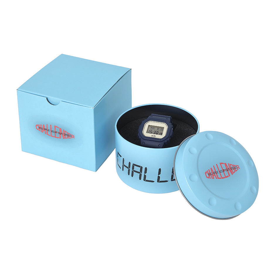It comes with the familiar DW-5600 formula, with a resin case and strap, shock resistance, and 20-atmosphere water resistance. The overall color scheme is a muted navy blue, paired with a light display surround that keeps the dial legible without adding visual clutter. Standard digital functions such as timekeeping, alarms, stopwatch, and calendar are still unchanged.