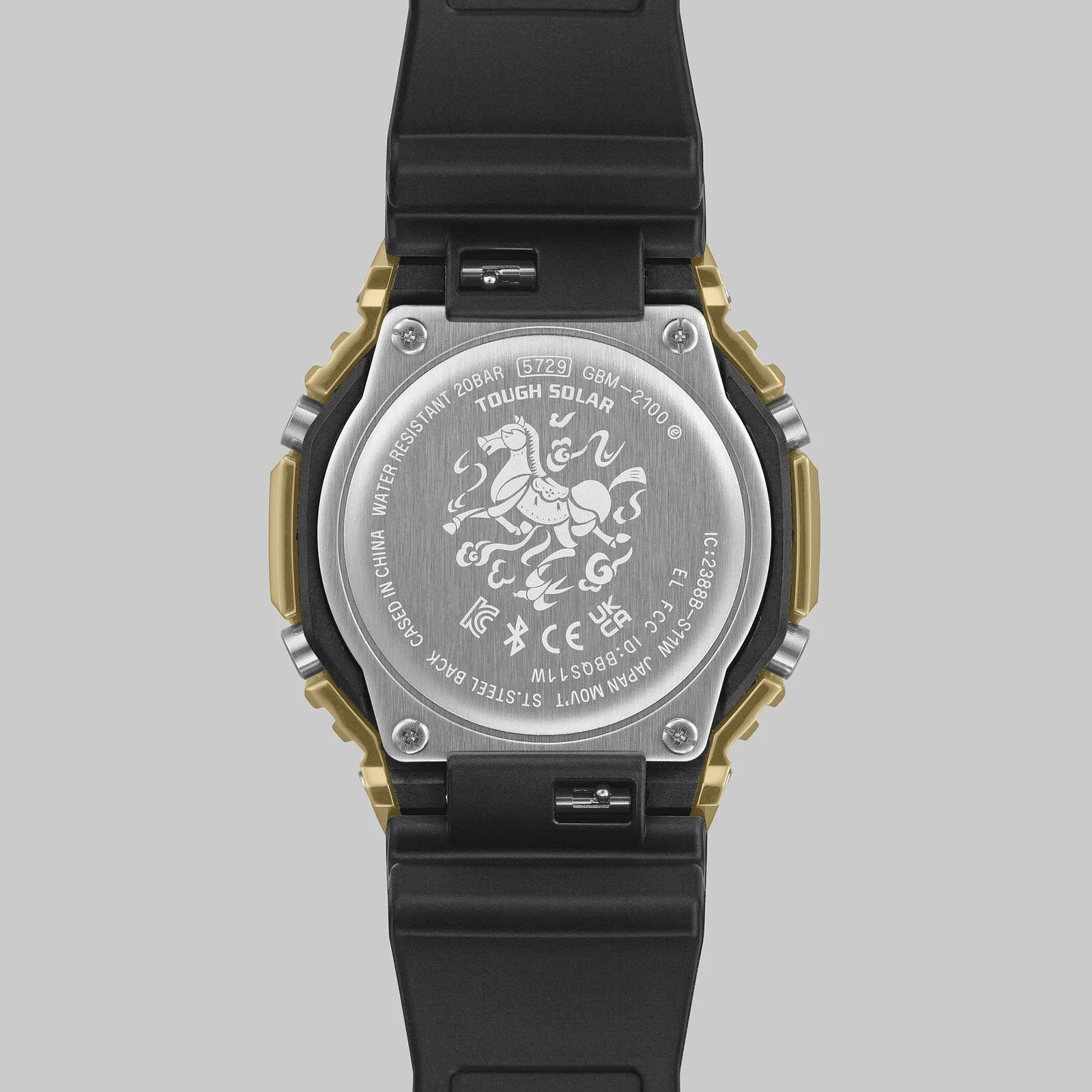 The watch has the slim 2100-series profile, measuring 49.3 × 44.4 × 11.9 mm and weighing 72 g. It has way more ornate detailing than standard models. The bezel uses Gold IP finishing, and the dial’s indices and hands are presented in a gold-and-red color scheme. The rear case is engraved with a stylized horse illustration, which matches the zodiac theme - referencing the mythical "Senri-uma," a legendary horse said to run a thousand miles in a single day. Casio says the design is a symbol of strength and good luck for the new year.