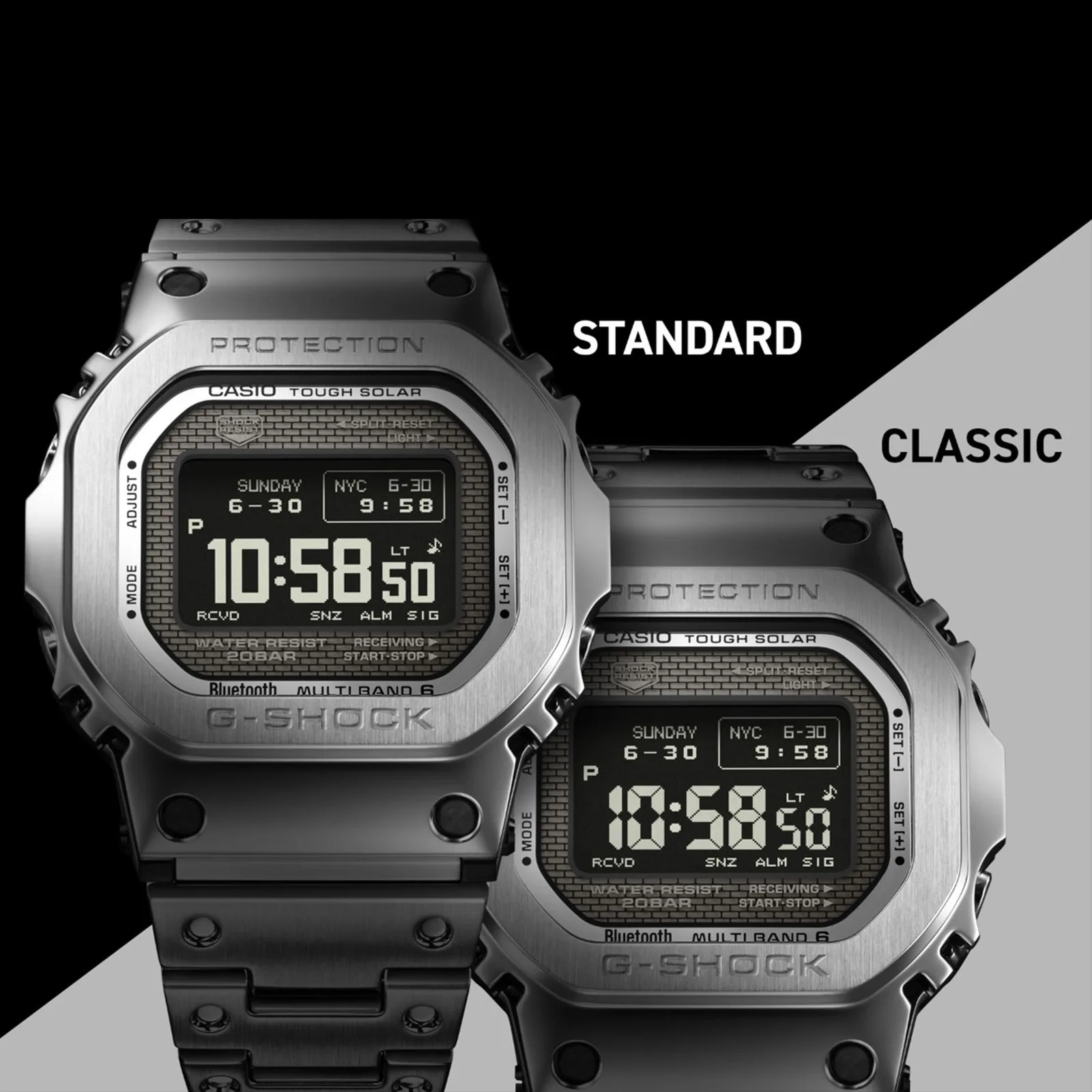 Technically, this is the first full‑metal square to use a high‑contrast memory‑in‑pixel (MIP) LCD, for a sharper, more flexible digital layout than previous G‑SHOCK squares, including multiple time‑display configurations and switchable fonts (Standard or 7‑segment‑style Classic) via the companion app. Under the hood, buyers will get the standard G‑Shock tool‑watch spec sheet: 20‑bar water resistance, Tough Solar charging, shock‑resistant construction, Bluetooth Smartphone Link, Multiband 6 radio control, world time, stopwatch, countdown timer, five alarms and a full‑auto LED backlight.