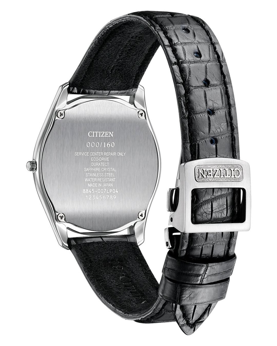 From the back, the watch clearly states its identity with a brushed caseback stamped with "000/160", referencing its limited-edition status. It runs on Citizen’s 8845 Eco-Drive movement, which powers the watch through ambient light and doesn’t need battery replacement. Duratect hardening, a scratch-resistant sapphire crystal, and a Japanese-made build round out the premium spec list.