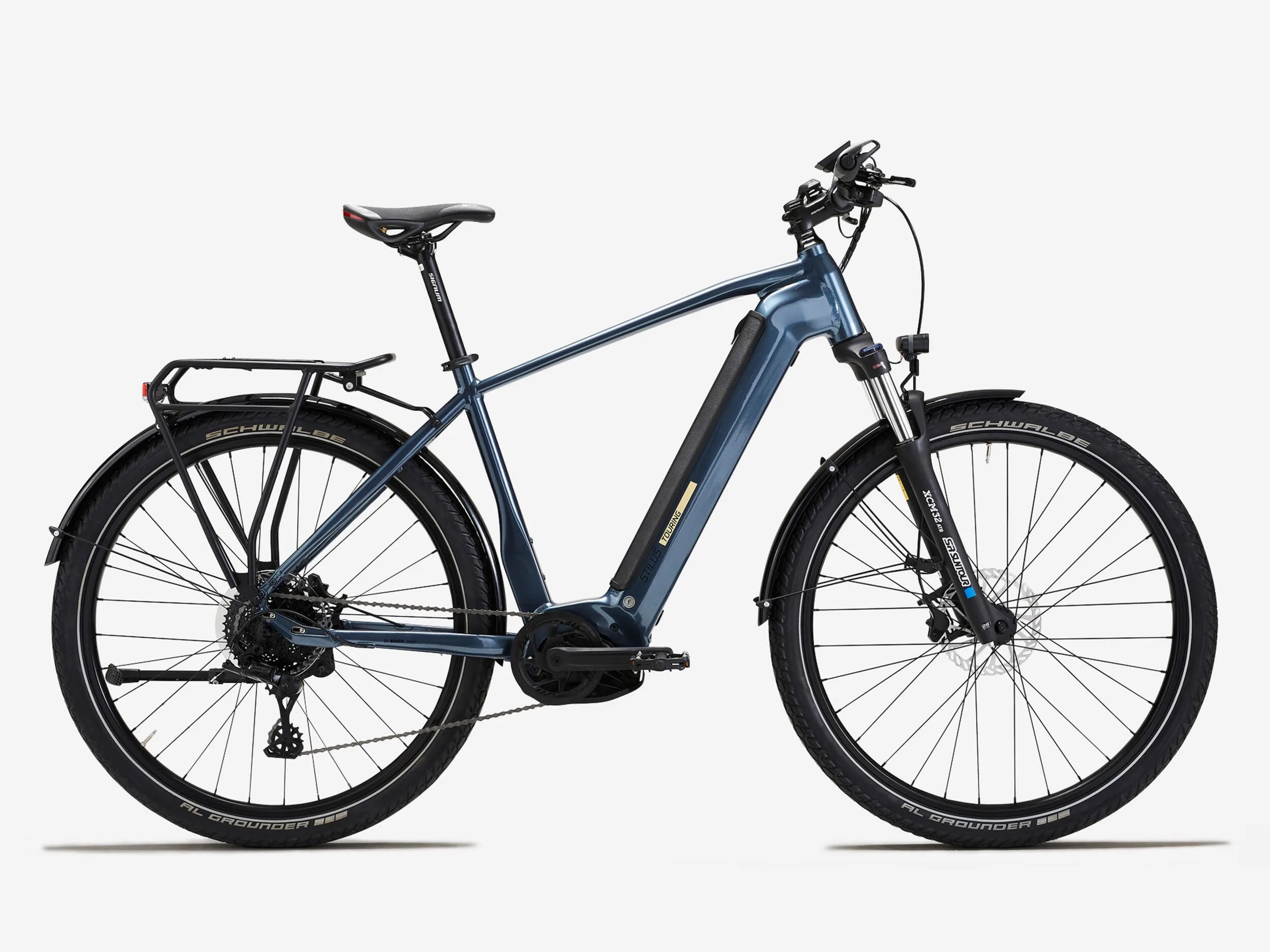 Aside from the frame design, another significant difference between the older and newer versions of the E-Touring is the addition of an SR Suntour XCM32 ATB suspension fork with 100 mm travel. Otherwise, the two e-bikes are identical, powered by a mid-mounted Bosch Performance Line CX Gen4 motor with 85Nm torque and up to 340% assistance limited to a top speed of 25 kph (~16 mph). A torque sensor adjusts the power to match your pace, and the Bosch PowerTube 750Wh battery allows you to ride with assistance for up to 130 km (~81 miles). The e-bike has a Bosch Kiox display for navigation, statistics like your current speed and control of the eBike Lock tool. Other features include Schwalbe 29x2.35-in tires, a Microshift Advent X 10-speed rear derailleur, Clarks M2 hydraulic disc brakes and lights at the front and rear.