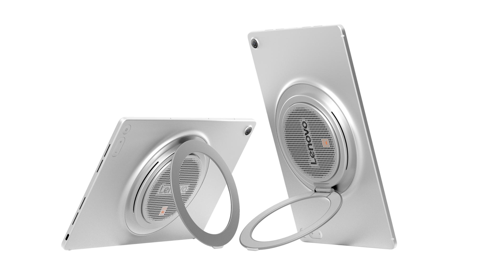 Primarily, the circular area contains a 'JBL 9-unit PRO' speaker system. Also, these speakers include passive radiators to maximise bass response. Moreover, the tablet features a built-in stand that can be used in portrait or landscape modes. The Tab Plus Gen 2 also appears to support an active stylus.