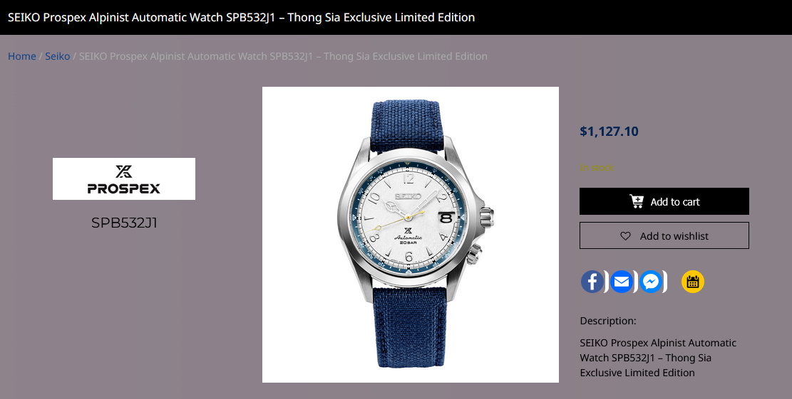 Now, Seiko Malaysia has introduced a brand-new addition to the line-up: the Thong Sia Group Exclusive Prospex Alpinist SPB532J1. It's a limited run inspired by the snowy peaks of the world’s highest mountains, and it's being released exclusively for Malaysia, Brunei, Hong Kong, Macau, and Singapore. Only 800 pieces will be produced.