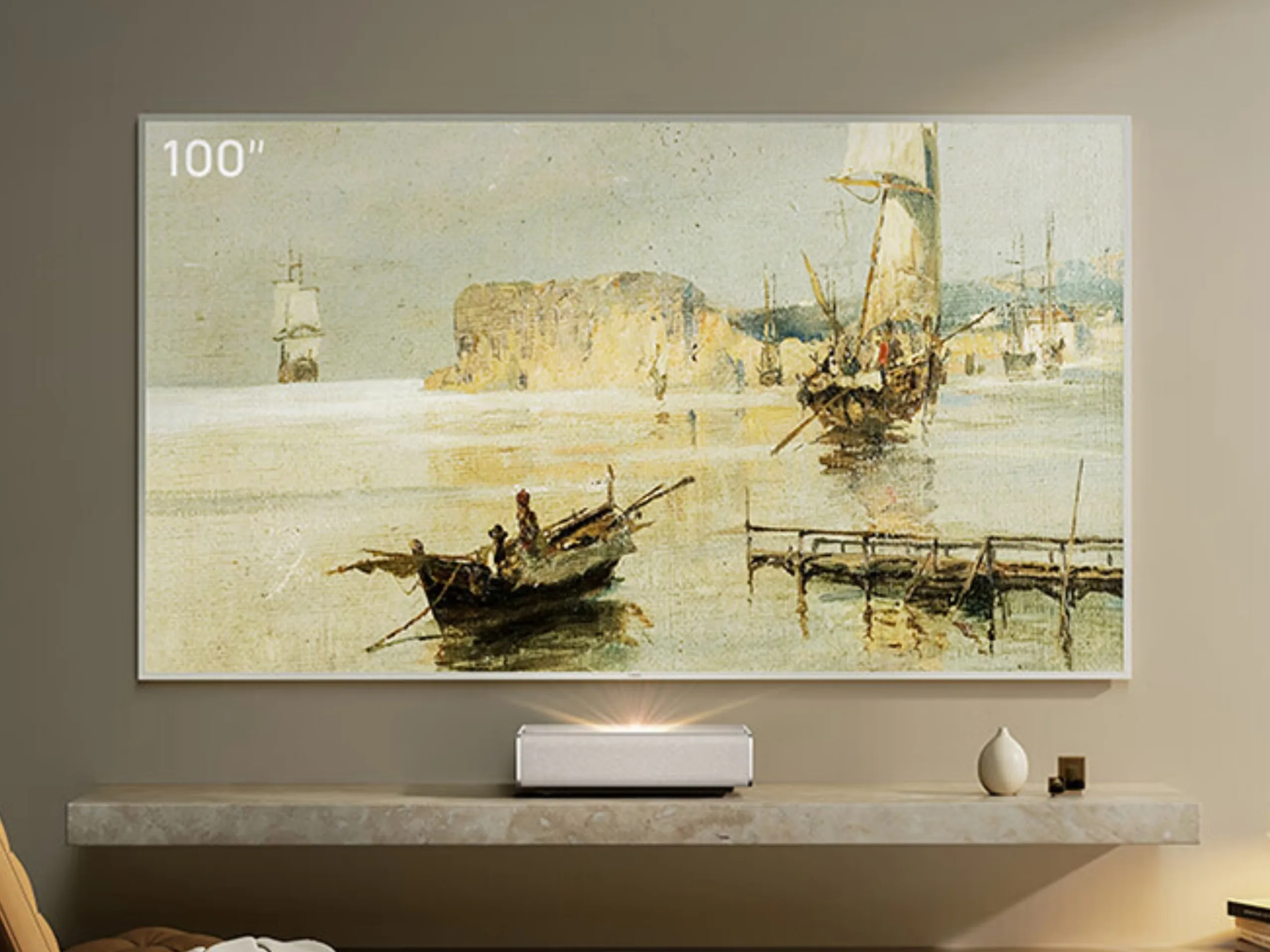 The XGIMI 100-in Soft Light Art TV MIRA has been revealed in China. The 1080p laser TV uses XGIMI’s latest Dual-Light technology, combining LED and laser light sources for improved brightness. The ultra-short throw device has a 0.21:1 throw ratio, allowing you to place the projector 24 cm (~9.4 in) from the wall to achieve the 100-in (~39 cm) image.