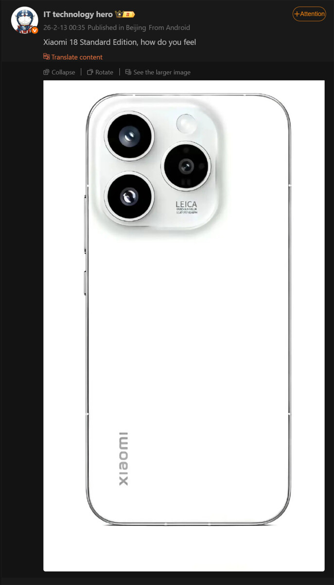 The Xiaomi 18 Pro and Xiaomi 18 Pro Max are reported to be in contention for the more powerful Snapdragon 8 Elite Gen 6 Pro, too. By contrast, the Xiaomi 18 is rumoured to be the only one of the three that leverages Qualcomm's standard Snapdragon 8 Elite Gen 6. Not only that, but a new rumour for a widely regarded Weibo user suggest that the Xiaomi 18 will also depart from its predecessor's design, not least with a larger display.
