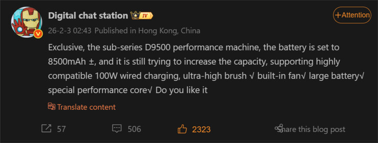 For one, Digital Chat Station alleges that battery capacity is set to grow by at least 15% between generations. Apparently, this circa 8,500 mAh battery will support 100 W wired charging too, as well as a high refresh rate display and a 'specially tuned performance chip'.